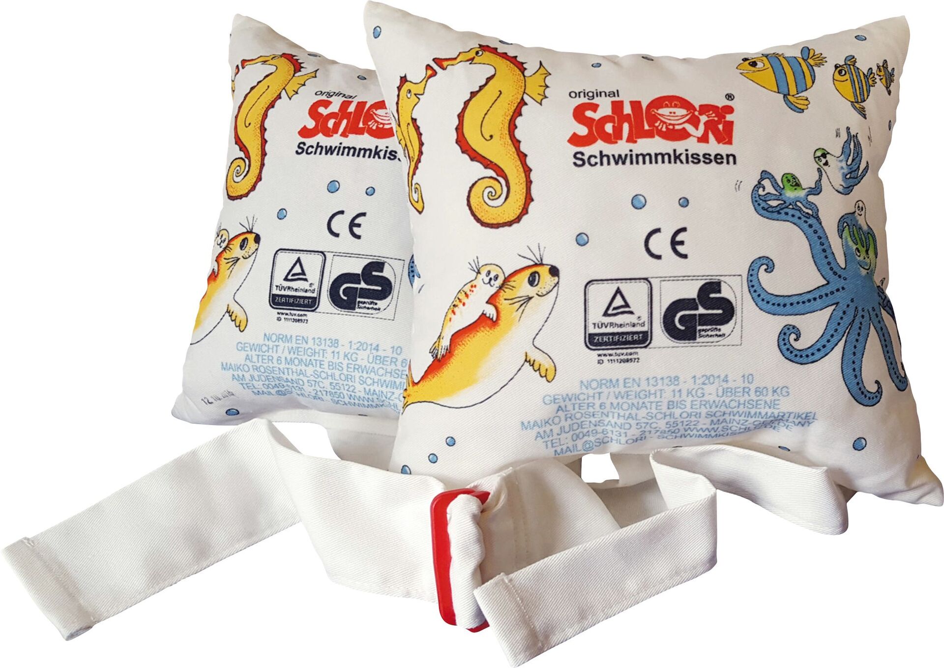 Dieses Schwimmkissen sitzt so optimal am Körper, dass sich eine natürliche Schwimmlage von selbst ergibt. Bei größter Bewegungsfreiheit wird so das ungehinderte Einüben der Schwimmbewegungen möglich. Durch einfaches Drücken auf das Kissen kann der Auftrieb reduziert werden. Sie haben sich für Anfänger jeden Alters bewährt und sind auch für Behinderte hervorragend geeignet. Sie bestehen aus reiner Baumwolle und sind damit eine ökologische Alternative zu Schwimmhilfen aus Plastik. Sie sind see-, chlor- und thermalwasserfest. Lieferung in Einheitsgröße für Babys, Kinder und Erwachsene(verstellbar)aus 100% Baumwolle. Einheitsgröße 11 kg bis 60 kg.